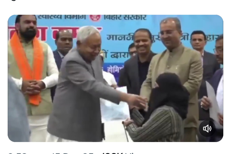 आयुष डॉक्टर का हिजाब हटाने का वीडियो वायरल, सीएम नीतीश कुमार के व्यवहार पर मचा सियासी बवाल