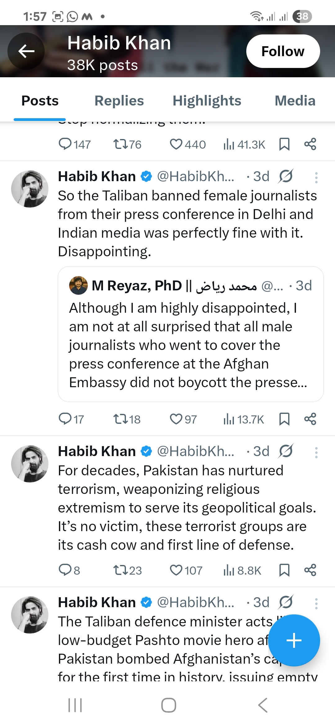 वहीं अफ़ग़ानिस्तान के पत्रकार हबीब ख़ान ने सोशल मीडिया साइट एक्स पर लिखा है, ''डियर इंडिया, तालिबान के अधिकारियों की मेहमाननवाज़ी अफ़ग़ान राष्ट्र के साथ एक धोखा है और उन लड़कियों के मुँह पर तमाचा, जिनके स्कूल जाने पर प्रतिबंध लगा दिया गया. उस शासन की ख़ुशामदी न हो, जो आतंक और महिलाओं के उत्पीड़न से बना है.''