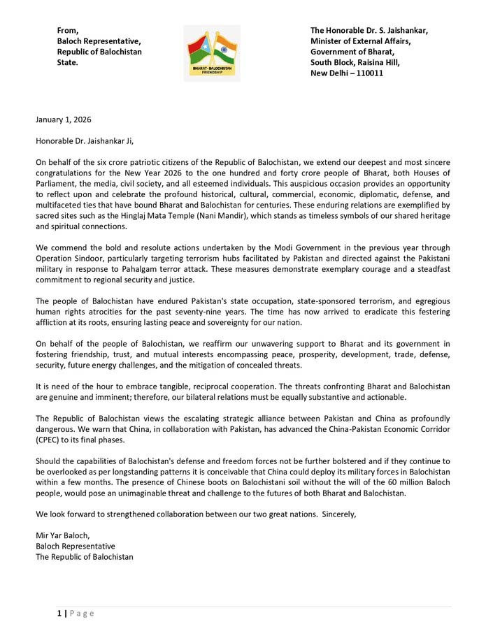 बिग ब्रेकिंगः बलूच नेता ने एस. जयशंकर को खुला पत्र लिखकर किया आगाह! कहा- बलूचिस्तान में चीन उतार सकता है सेना