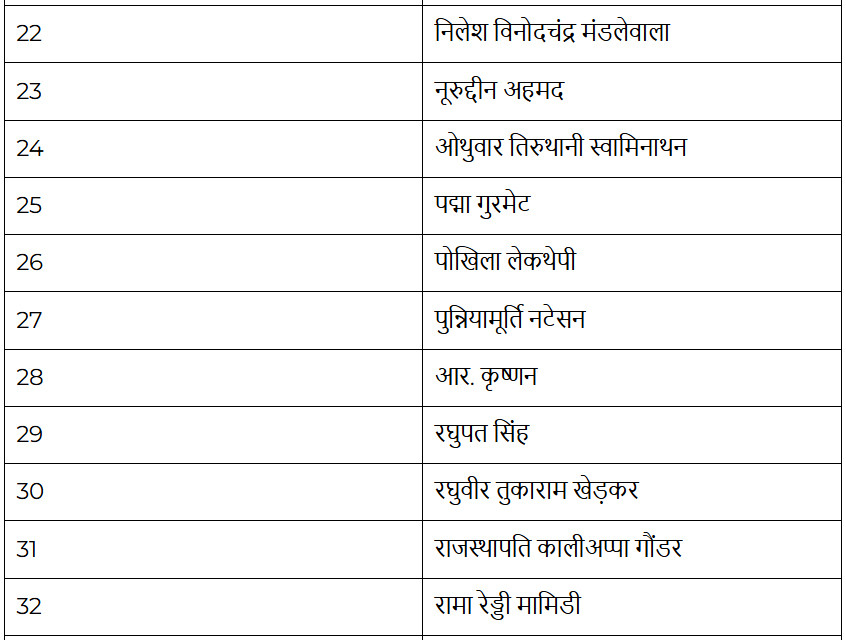 नई दिल्ली। केन्द्र सरकार ने आज रविवार को पद्म पुरस्कार 2026 की घोषणा कर दी है। खबरों के अनुसार कर्नाटक के अंके गौड़ा और महाराष्ट्र की आर्मिडा फर्नांडीज को गुमनाम नायकों की श्रेणी में पद्म श्री से सम्मानित किया जाएगा। इसी प्रकार मध्यप्रदेश के भगवदास रैकवार और जम्मू कश्मीर के बृज लाल भट को गुमनाम नायकों की श्रेणी में पद्म श्री से सम्मानित किया जाएगा। इसी श्रेणी में छत्तीसगढ़ के बुदरी थाती और ओडिशा के चरण हेम्ब्रम और उत्तर प्रदेश के चिरंजी लाल यादव, गुजरात के धार्मिकलाल चुन्नीलाल पंड्या शामिल हैं। बता दें कि ये पुरस्कार कला, सामाजिक कार्य, सार्वजनिक मामले, विज्ञान और इंजीनियरिंग, व्यापार और उद्योग, चिकित्सा, साहित्य और शिक्षा, खेल और सिविल सेवा जैसे विभिन्न विषयों और क्षेत्रों में दिए जाते हैं। पद्म विभूषण असाधारण और विशिष्ट सेवा के लिए दिया जाता है। पद्म भूषण उच्च कोटि की विशिष्ट सेवा के लिए और पद्म श्री किसी भी क्षेत्र में विशिष्ट सेवा के लिए दिया जाता है।