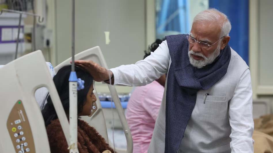 नई दिल्ली। प्रधानमंत्री नरेन्द्र मोदी आज बुधवार को भूटान से लौटने के बाद दिल्ली स्थित एलएनजेपी हॉस्पिटल पहुंचे। इस दौरान उन्होंने दिल्ली ब्लास्ट में घायल हुए लोगों से मुलाकात की। अस्पताल के अधिकारियों और डॉक्टरों ने प्रधानमंत्री मोदी को स्थिति की जानकारी दी। बता दें कि सोमवार, 10 नवंबर की शाम राजधानी दिल्ली में लाल क़िला मेट्रो स्टेशन के पास एक कार में खतरनाक ब्लास्ट हुआ।
