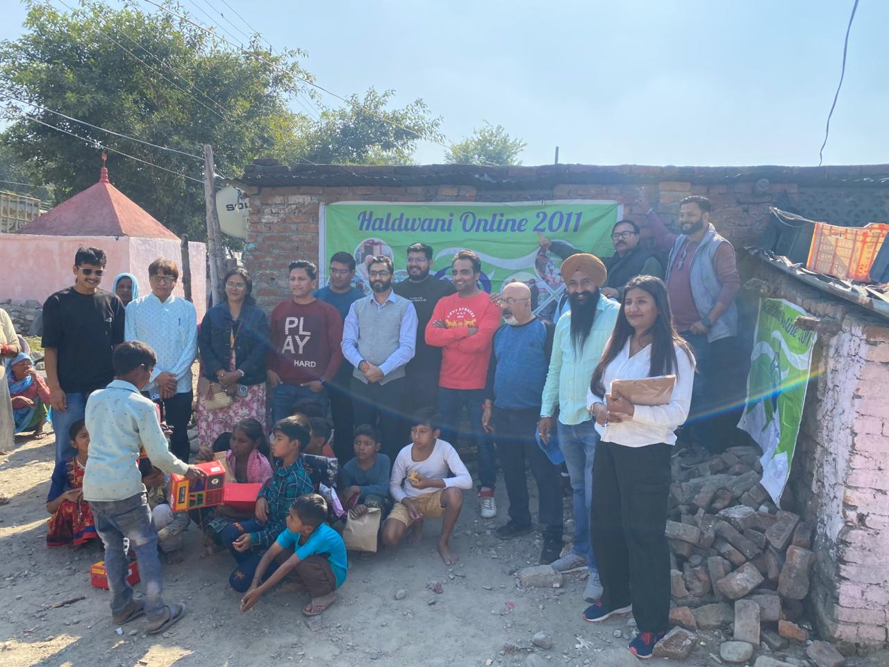 बाल दिवस के अवसर पर हल्द्वानी ऑनलाइन 2011 टीम ने रेलवे फाटक, आंवला चौकी गेट और तीनपानी बाईपास क्षेत्र की झुग्गी बस्तियों में जाकर बच्चों के साथ यह दिन मनाया। जहां अधिकांश संगठन ऐसे अवसरों पर केवल खाद्य सामग्री वितरण तक सीमित रहते हैं, वहीं टीम ने इस बार एक अलग और दूरगामी पहल की शुरुआत कर मिसाल पेश की।