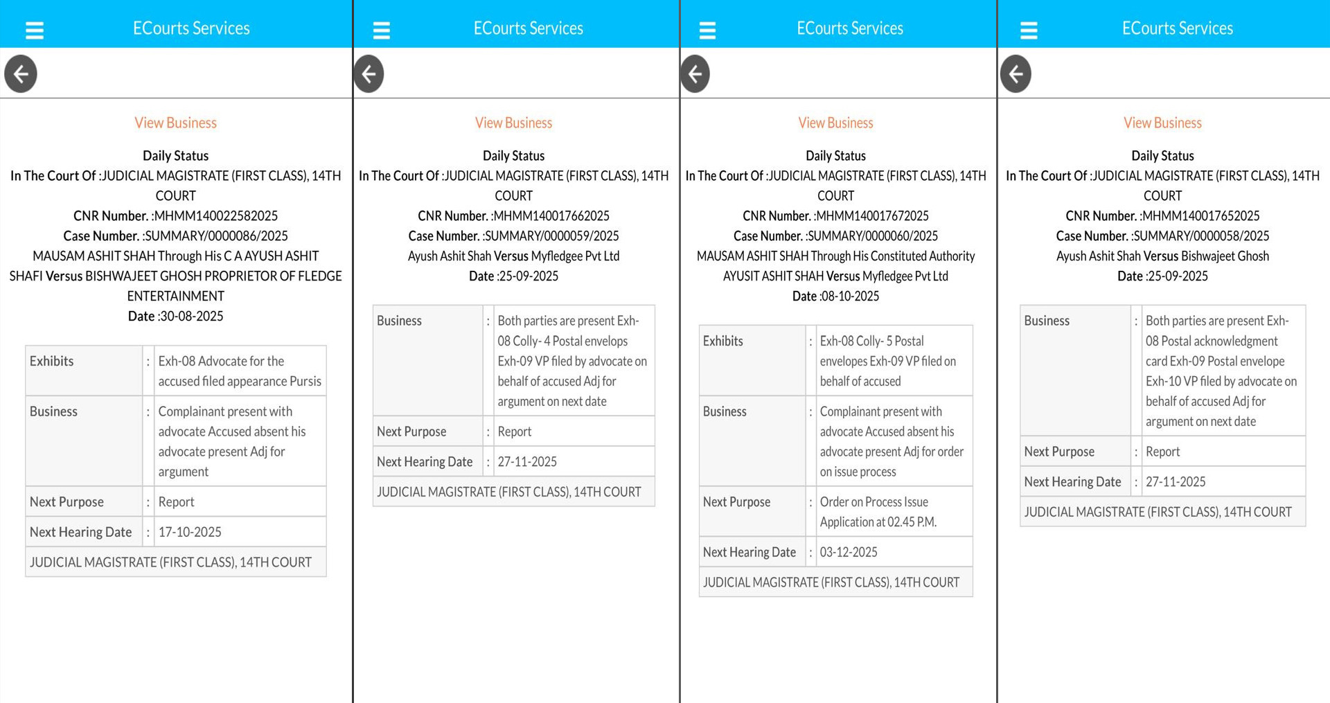 इस मामले में कंपनी के डायरेक्टर्स बिश्वजीत घोष, पियाली चटर्जी घोष और शबाब हुसैन (उर्फ शबाब हाशिम) के नाम सामने आए हैं। आरोप है कि आरोपियों द्वारा दिए गए चेक बाउंस हो गए, जिसके बाद मुंबई के गिरगांव कोर्ट में नेगोशिएबल इंस्ट्रूमेंट्स एक्ट की धारा 138 के तहत कुल 6 आपराधिक केस दर्ज किए गए हैं। सूत्रों के मुताबिक, यह मामला सिर्फ चेक बाउंस तक सीमित नहीं है, बल्कि इसमें कथित तौर पर निवेश के नाम पर गुमराह करने, फर्जी आश्वासन देने और बार-बार तारीखें बढ़ाने जैसे आरोप भी शामिल हैं।इतना ही नहीं कंपनी के डायरेक्टर्स और परिवार पर स्टूडेंट्स, मीडिया पब्लिकेशन्स और बैंकों द्वारा उन्हें धमकाने के कई और केस चल रहे हैं, जिनकी जांच चल रही है।