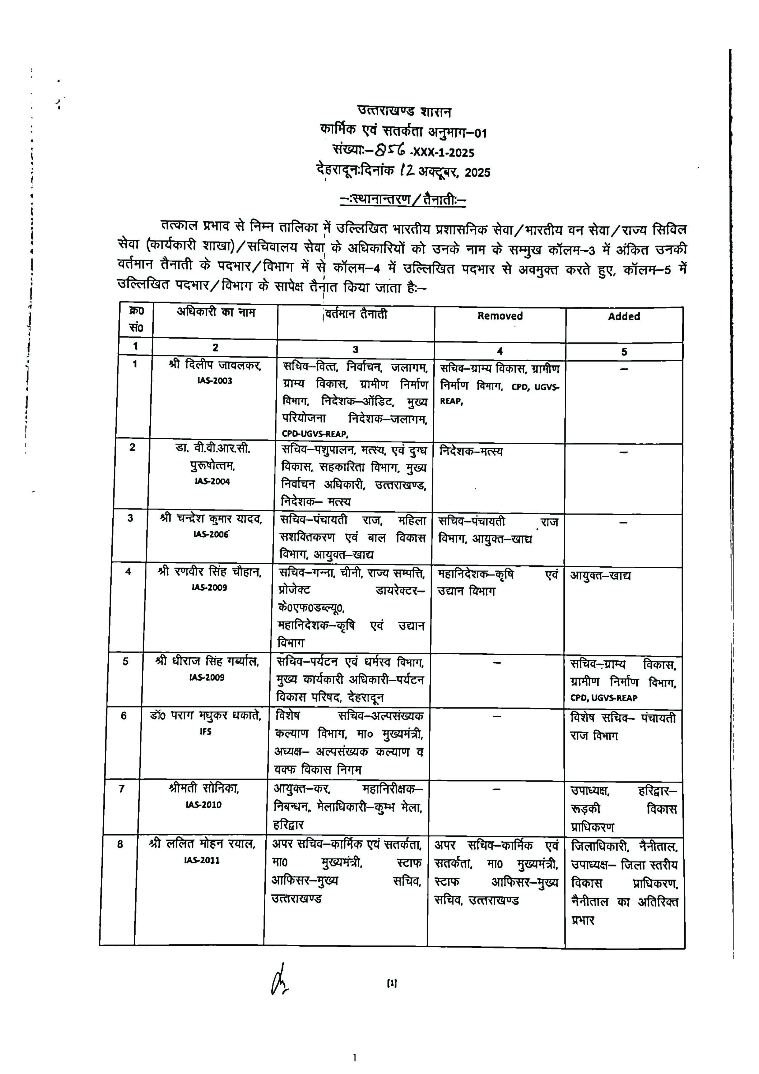 उत्तराखण्ड में बड़ा प्रशासनिक फेरबदल! नैनीताल, अल्मोड़ा समेत कई जिलों के डीएम बदले, जानें किसे कहां मिली तैनाती