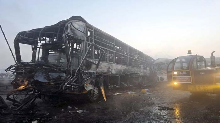 इसके बाद मौके पर ही अफरा-तफरी मच गई। सूचना पर पुलिस और प्रशासनिक अमला तत्काल मौके पर पहुंचा और बचाव एवं राहत कार्य शुरू किया। इस दौरान कड़ी मशक्कत के बाद फायरबिग्रेड ने आग पर काबू पाया। प्रत्यक्षदर्शियों के मुताबिक घटना के समय दृश्यता लगभग शून्य थी। कोहरे के चलते एक के बाद एक सात बसें और तीन कारें आपस में टकरा गईं।