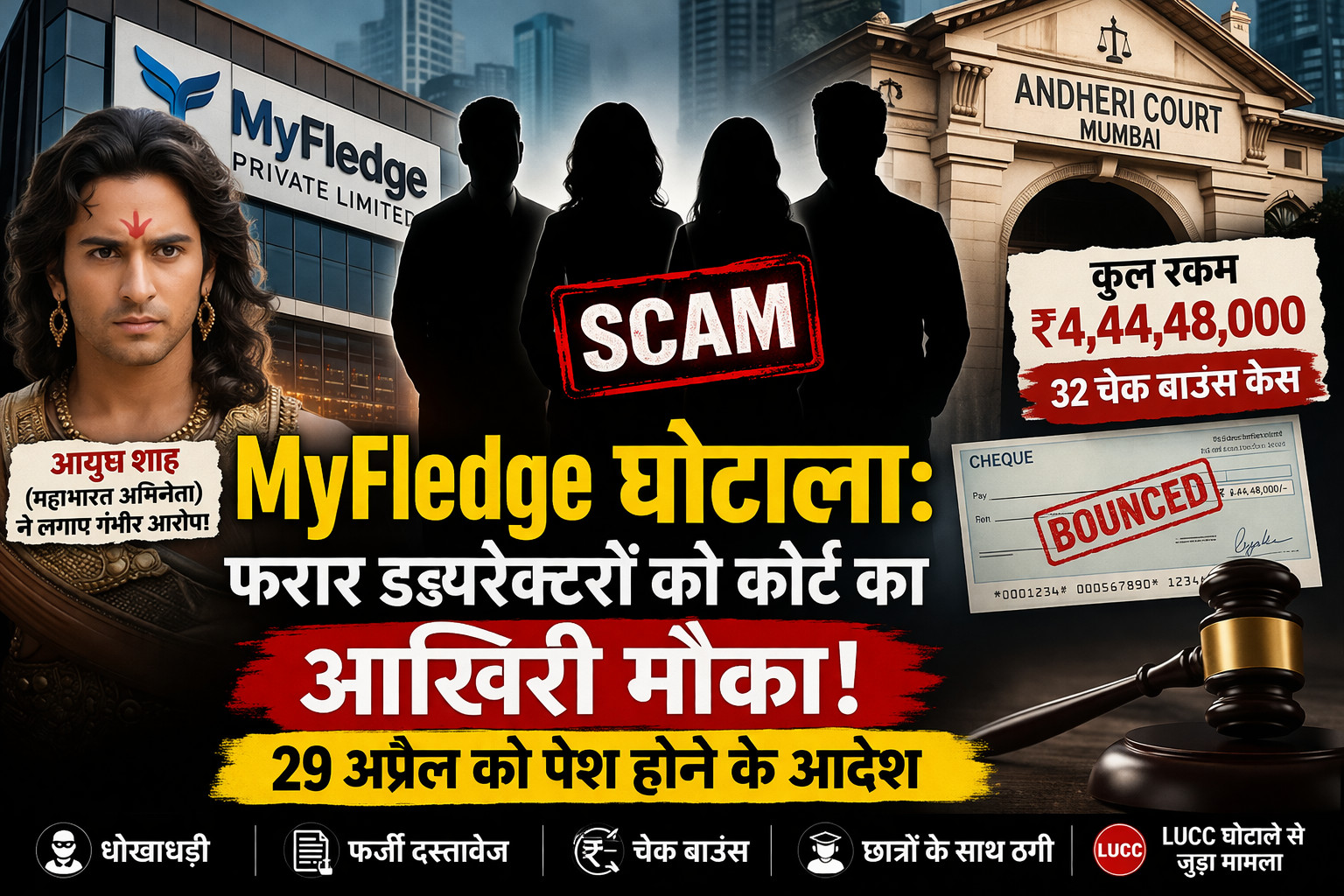 साल 2025 में दर्ज कई आपराधिक मामलों में घिरी MyFledge प्राइवेट लिमिटेड के निदेशक अब तक अदालत में पेश नहीं हुए हैं, जिसके बाद मुंबई की अदालत ने सख्त रुख अपनाते हुए उन्हें 29 अप्रैल 2026 को अंतिम मौका दिया है। यह मामला 32 चेक बाउंस केस से जुड़ा है, जिसकी कुल रकम करीब ₹4,44,48,000 बताई जा रही है। इस पूरे मामले में कथित LUCC घोटाले का भी कनेक्शन सामने आया है।