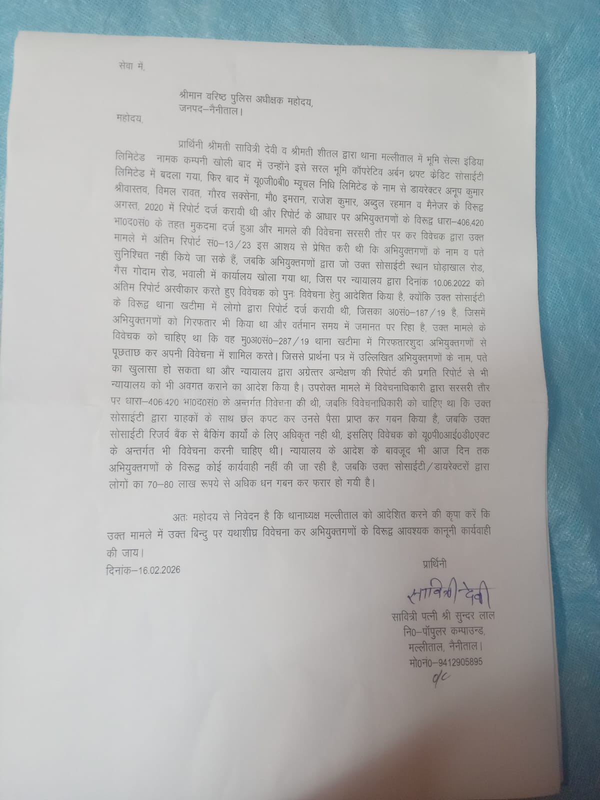 नैनीताल: सावधान! मल्लीताल में निवेश घोटाले का खुलासा, 80 लाख रुपये हड़पने का आरोप, कोर्ट के आदेश के बाद भी कोई कार्रवाई नहीं, पीड़िता ने पुलिस प्रशासन को सौंपा शिकायती पत्र