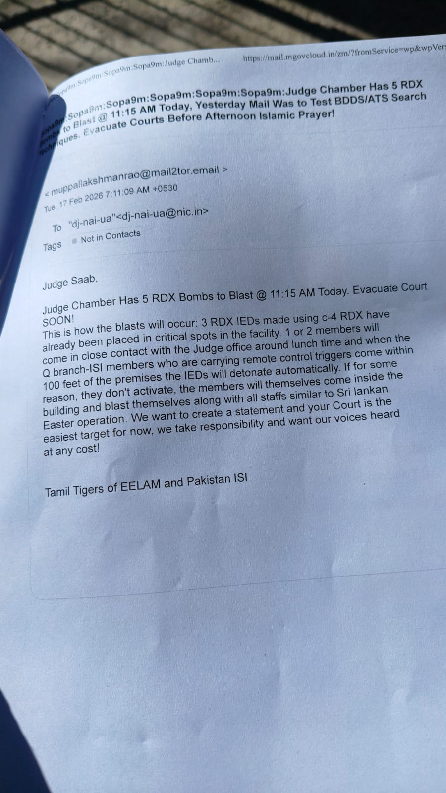 प्राप्त जानकारी के अनुसार मंगलवार सुबह न्यायालय से जुड़े आधिकारिक ईमेल पर एक और धमकी भरा संदेश भेजा गया। इस मेल में दावा किया गया कि जज चैंबर के आसपास आरडीएक्स विस्फोटक लगाए गए हैं और तय समय पर विस्फोट किया जा सकता है। मेल में यह भी लिखा गया कि परिसर को तत्काल खाली कराया जाए।