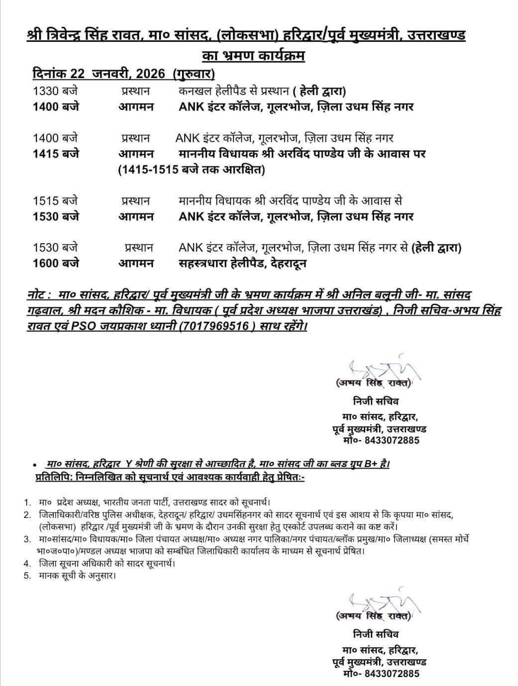 ऊधम सिंह नगर ब्रेकिंगः नोटिस को लेकर गरमाई सियासत! कल गदरपुर आयेंगे पूर्व सीएम त्रिवेन्द्र सिंह रावत, विधायक अरविन्द पाण्डे से करेंगे मुलाकात! सांसद बलूनी और मदन कौशिक के आने की भी खबर